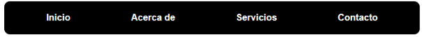 <div class=”navbar”> <a href=”#”>Inicio</a> <a href=”#”>Acerca de</a> <a href=”#”>Servicios</a> <a href=”#”>Contacto</a> </div> .navbar { display: flex; justify-content: space-around; align-items: center; background-color: black; padding: 20px; border-radius: 10px; } .navbar a{ color: white; text-decoration: none; font-weight: bold; font-family: sans-serif; }