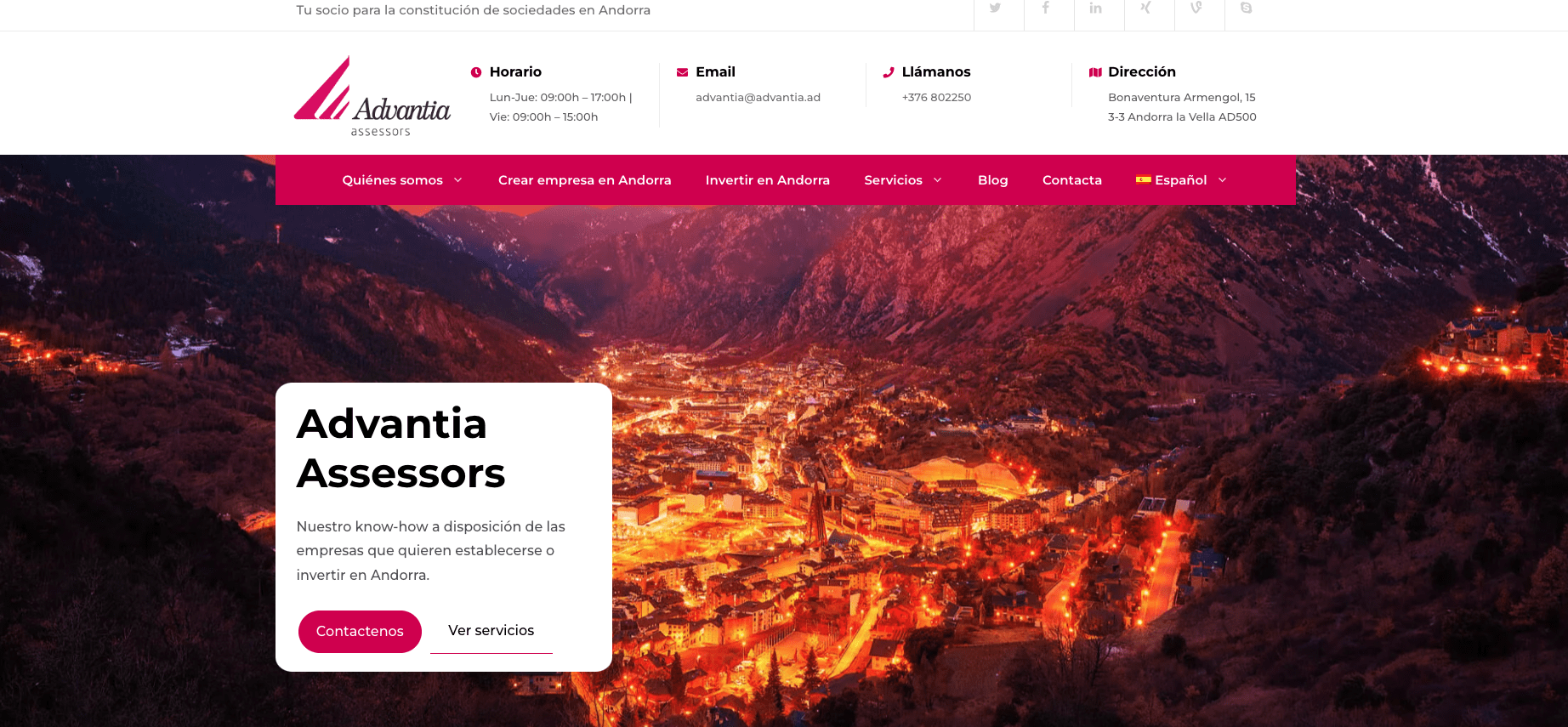 Advantia Assessors es una empresa andorrana especializada en servicios de contabilidad, fiscalidad, auditoría y consultoría financiera. Con más de 15 años de experiencia en el mercado, la compañía ha sido testigo y partícipe de la transformación que ha vivido Andorra en el ámbito contable y financiero. A lo largo de este tiempo, esta evolución se ha dado de la mano de sus clientes, a quienes ha acompañado en cada etapa, adaptándose a los cambios normativos y a las nuevas exigencias del entorno empresarial.