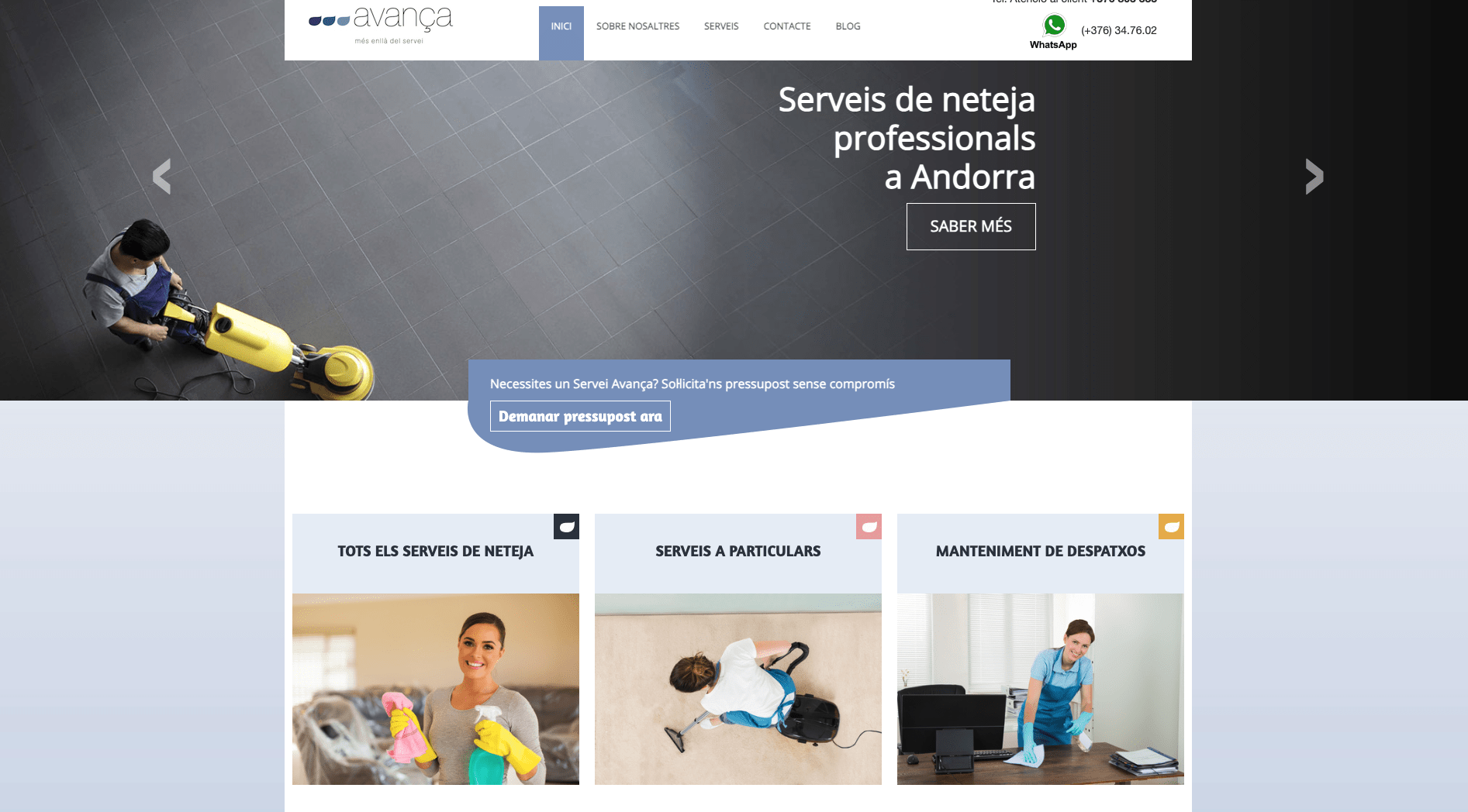 Avança es una empresa especializada en servicios de limpieza con la misión de facilitar la vida en espacios más limpios y saludables. En este sentido, con un firme compromiso con el bienestar de sus clientes y el medio ambiente, la empresa ofrece soluciones personalizadas para hogares, oficinas, empresas y comunidades, adaptándose a las necesidades de cada entorno. Por consiguiente, utilizando productos y técnicas ecológicas, Avança garantiza un servicio que mejora la apariencia de los espacios y contribuye a un entorno sostenible.